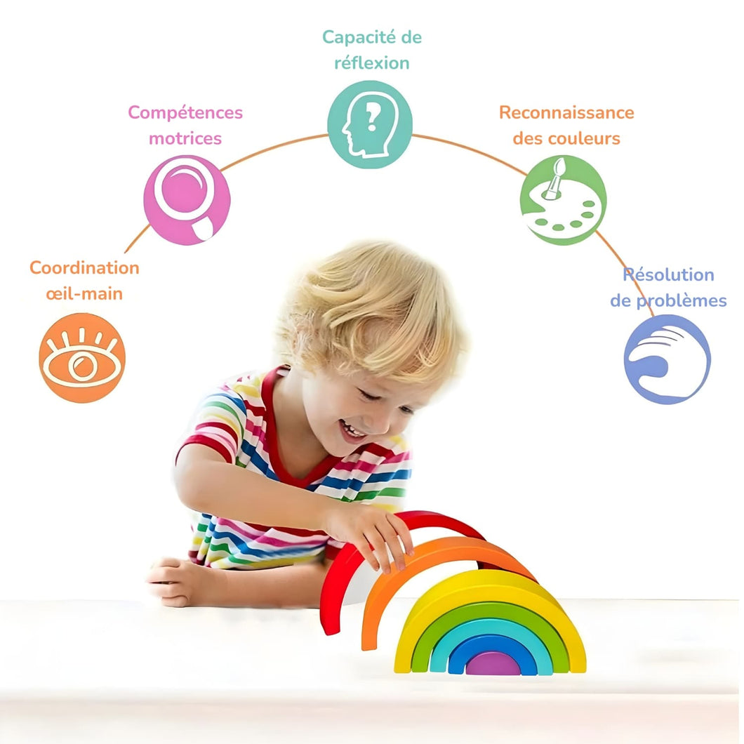 Composé de huit arches colorées aux formes harmonieuses, l’arc-en-ciel Montessori