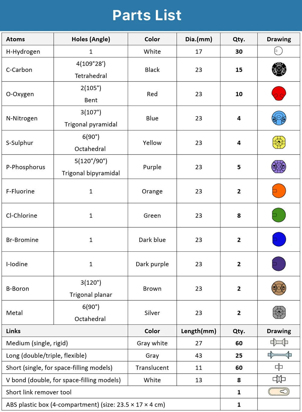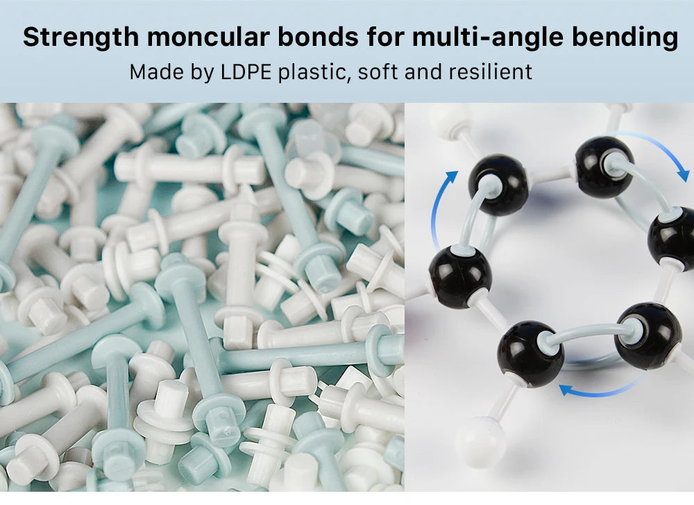 Robuste, précis et réutilisable, ce kit de modélisation moléculaire s’adresse aussi bien aux étudiants en chimie qu’aux professeurs ou aux curieux de sciences. Les liaisons se fixent et se retirent sans effort, permettant d’explorer, corriger et reconstruire à l’infini. Un véritable laboratoire miniature, idéal pour les travaux pratiques, les démonstrations ou simplement pour visualiser les réactions chimiques de manière ludique et intuitive.