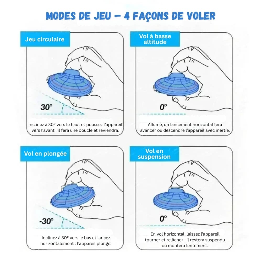 Plongez dans l’univers fascinant du Drone Auto Fly Magique, un jouet unique qui combine technologie, amusement et créativité. Doté d’un moteur gyroscopique intelligent, il effectue des figures aériennes fluides et spectaculaires. Son design en forme d’OVNI et ses lumières LED éclatantes créent un effet visuel saisissant qui émerveillera petits et grands. Facile à lancer, facile à contrôler, il suffit d’un geste pour que la magie prenne vie dans les airs.