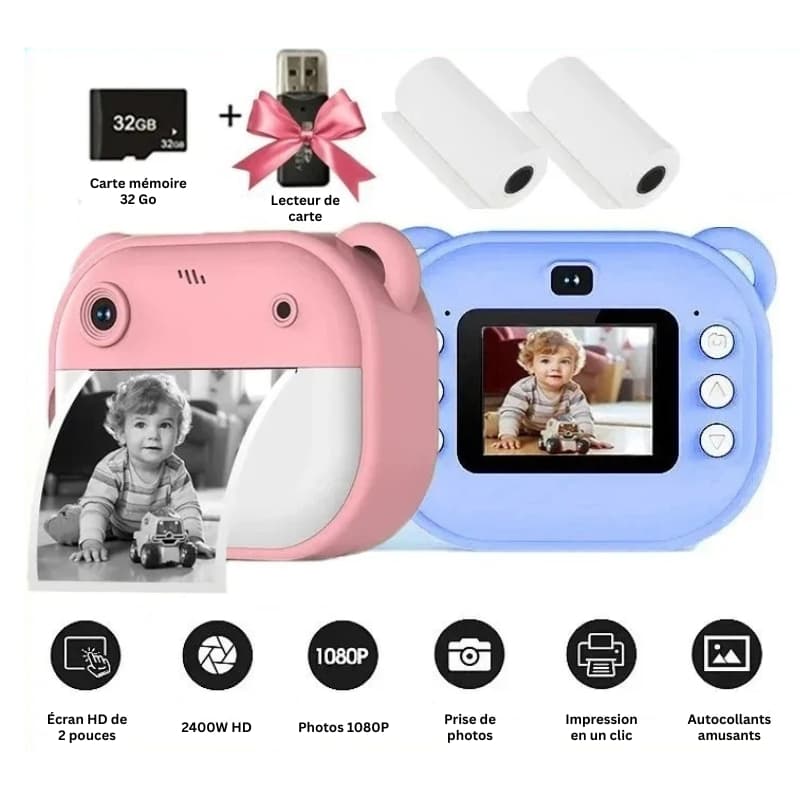 Appareil photo instantané enfant avec impression thermique et fonction vidéo dessin