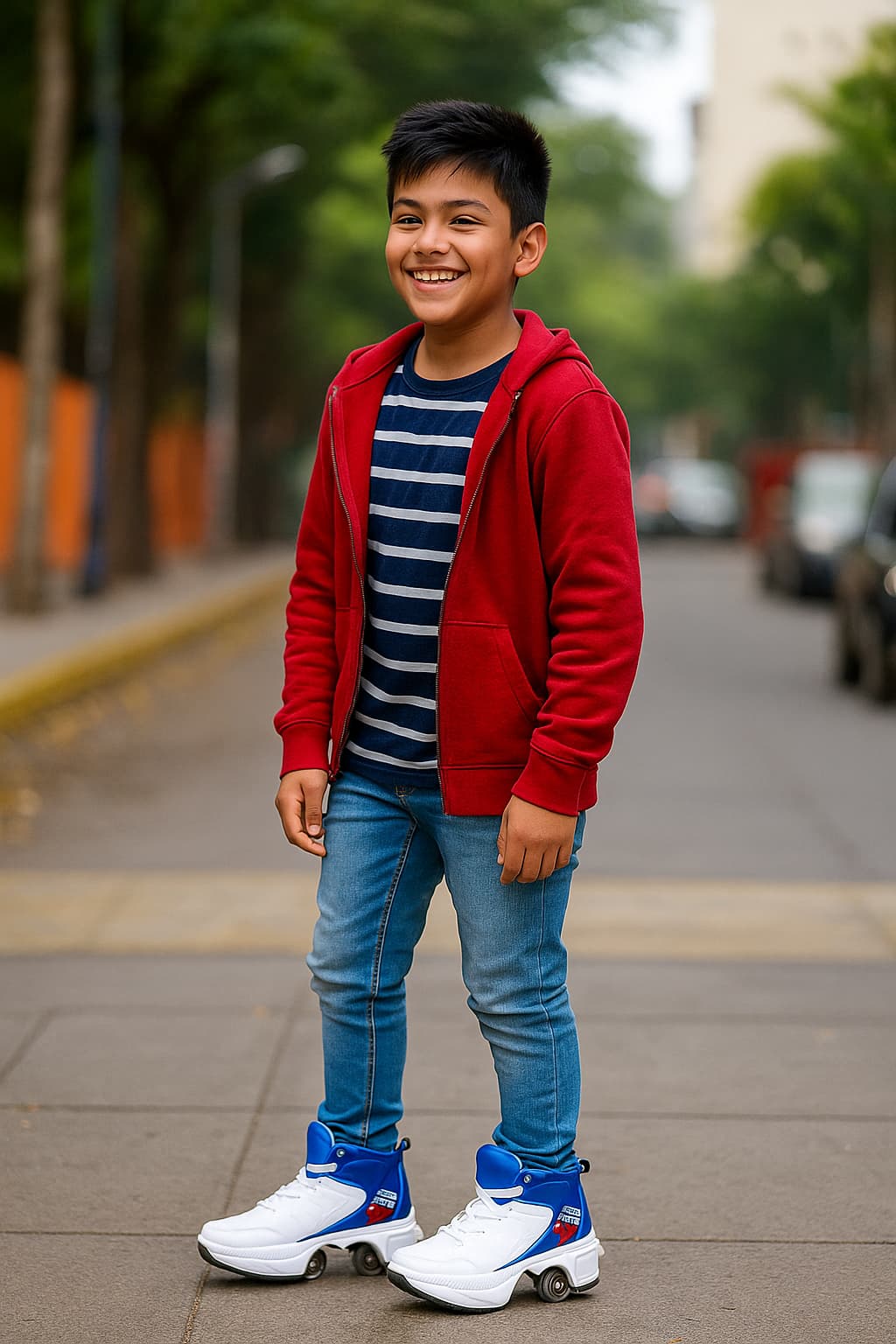 Ces chaussures à roulettes enfant se distinguent par leur design innovant : un mix parfait entre baskets de qualité et patins amusants. Leur semelle en caoutchouc antidérapant assure stabilité et sécurité, tandis que leur structure résistante en cuir synthétique garantit confort et durabilité. Une vraie révolution pour s’amuser sans limite !