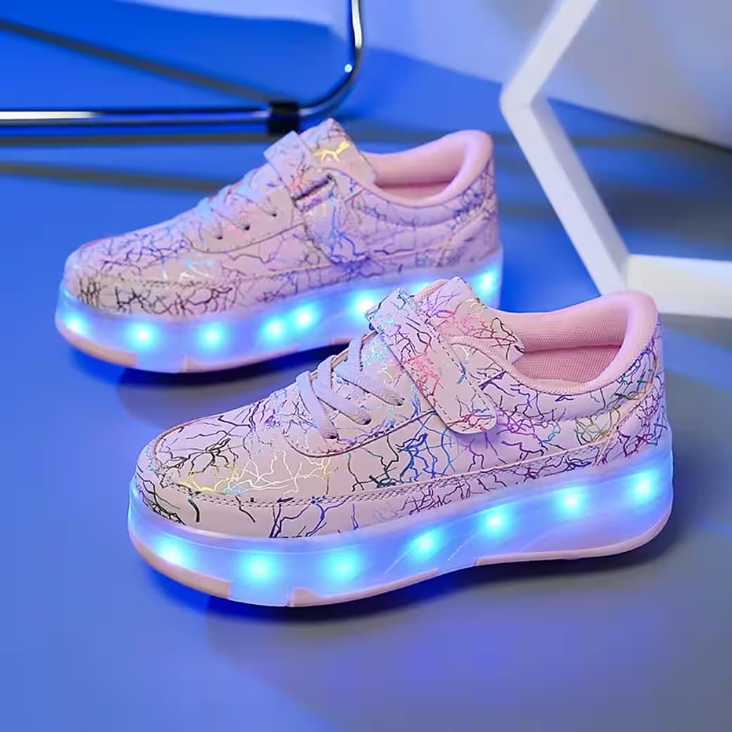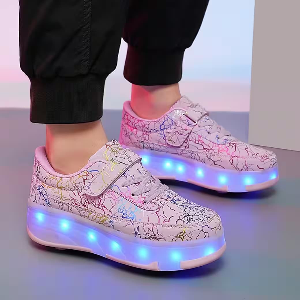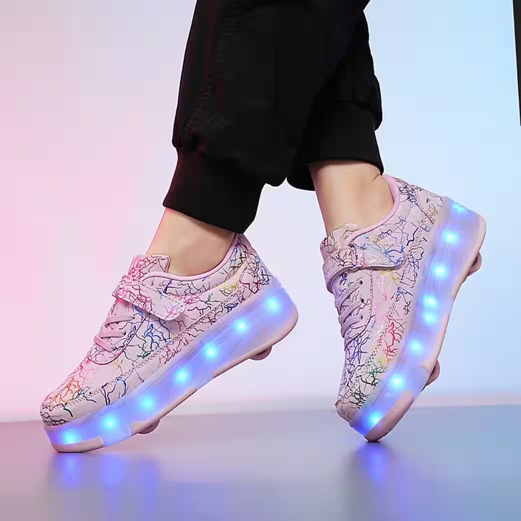 Avec leurs roues intégrées et amovibles, ces baskets lumineuses enfant se transforment en un clin d’œil de chaussures de sport classiques en rollers stylés. Idéales pour les petits comme pour les ados, elles offrent une expérience unique entre mode et mobilité.