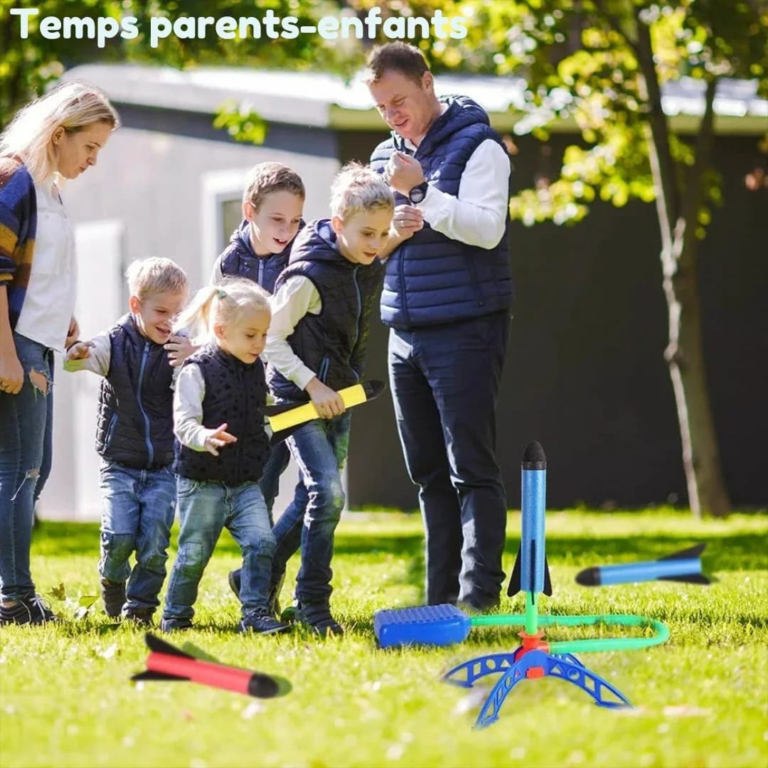 Le Jouet Lance-Roquettes Enfant promet des heures de divertissement actif. Facile à utiliser, il suffit d’appuyer pour propulser la roquette et admirer son envol ! Ce jeu stimule la curiosité scientifique et encourage les enfants à jouer dehors, loin des écrans.