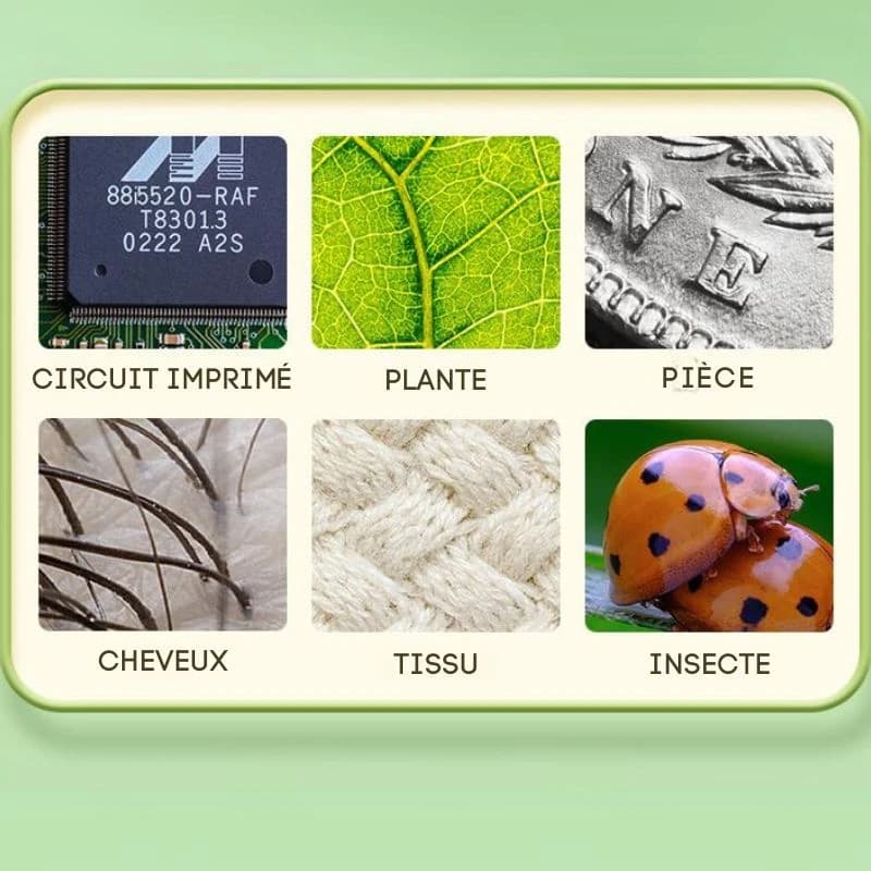 Conçu pour les jeunes explorateurs, le microscope digital allie légèreté, ergonomie et performance. Grâce à sa luminosité LED réglable, il s’adapte à toutes les conditions d’éclairage. Facile à transporter, il invite les enfants à observer le monde partout : dans le jardin, à l’école ou même en voyage. La science devient une aventure de tous les jours !